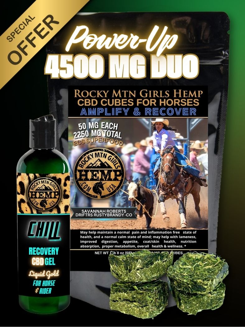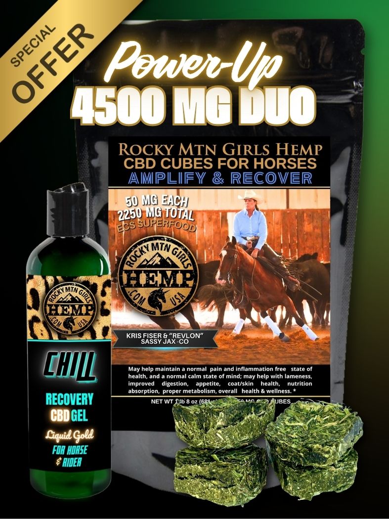 Why choose just one when your horses can have it all? Our Rocky Mountain Girls Hemp DUOs are designed to let you mix and match your favorites — whether it’s CBD Cubes + Tincture or CBD Cubes + CHILL Recovery Gel — for complete inside-and-out support.