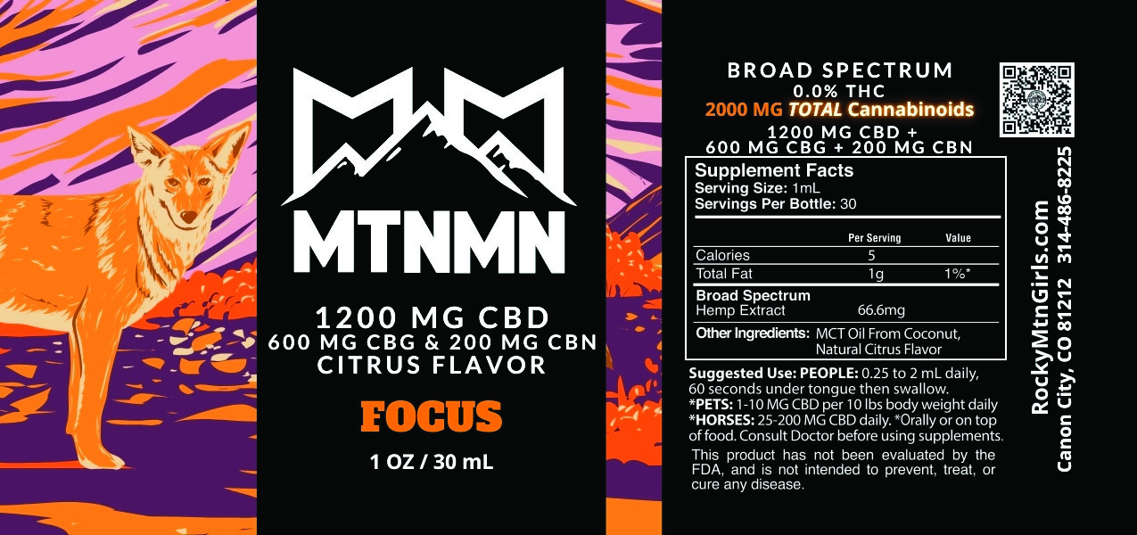 MTNMN FOCUS 2000 MG BLENDED CANNABINOIDS | Citrus Flavor | THC FREE: